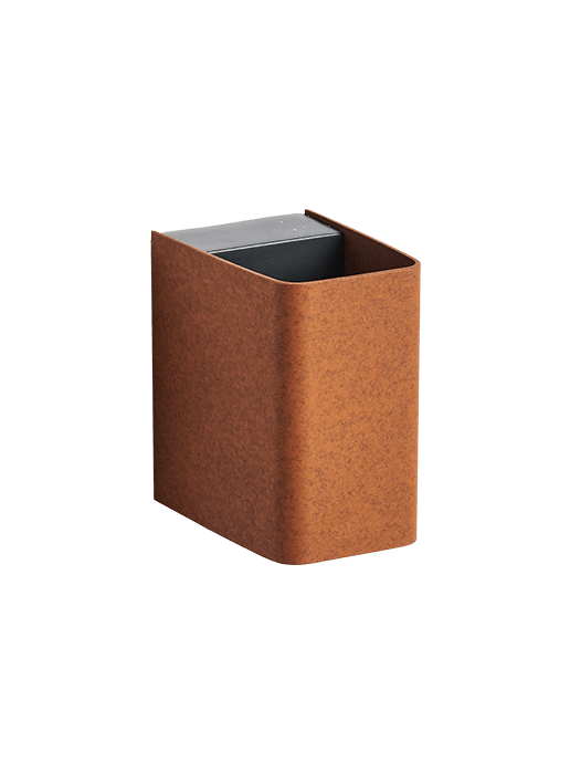 Eine hochwertige FCBV-Beschichtung in der Farbe Corten. Gut kombinierbar mit anderen Leuchten in der gleichen Farbe. Auch mit UP-DOWN-Beleuchtung erhältlich.