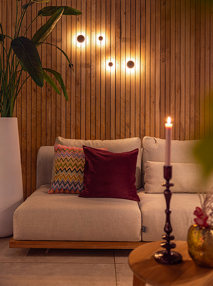 Die vielseitige MINI SWAY hat einen einzigartigen 360° Lichteffekt. Stellen Sie mehrere MINI SWAY WALL zusammen für einen spielerischen Effekt. Auch schön zu kombinieren mit SWAY WALL.
