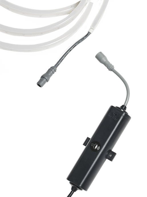 Der EVO FLEX DRIVER 1 ist ein Spannungswandler zum Anschluss des EVO FLEX LED-Streifens (1, 2, 3) an das 12-V-System von in-lite.